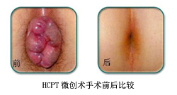 采用HCPT微创术是用全电脑肛肠综合治疗仪进行微创治疗痔疮的专利技术,它是采用高频电容场产热原理,使局部组织迅速干枯,痔核毛细血管坏死后自然脱落。得到满意的效果。HCPT微创术治疗系统的特点就是创面小、出血少、痛苦小、恢复快,不会损伤人体组织,治疗过程轻松,无需住院,手术当天就可正常活动。